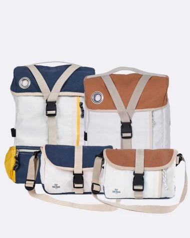 Our bikepacking line was designed and prototyped in our workshop in Lorient, France. It is the result of combining the know-how of our seamstresses specialized in upcycling sails, and that of our team of designers, keen to create premium-quality, durable, everyday pieces.