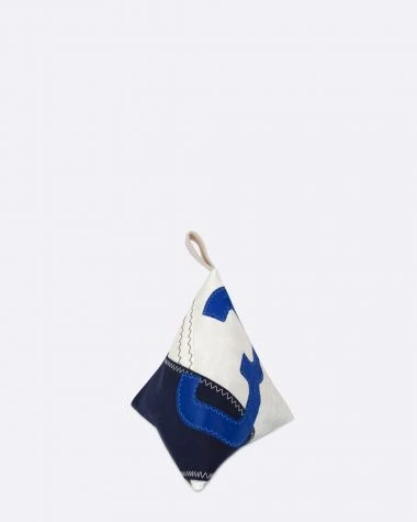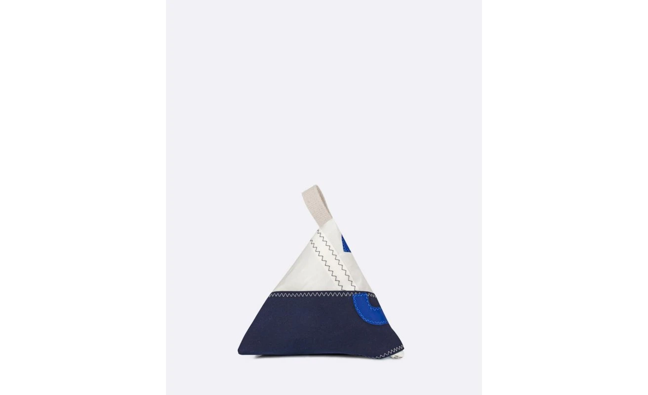 This door stopper made from 100% recycled sail, decorated with a navy blue fabric and a royal blue “3” sewn with our iconic zigzag stitch.