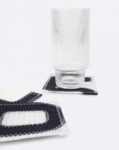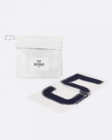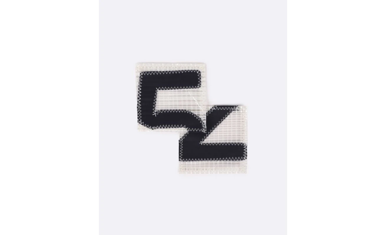 This set includes 6 white coasters with a large “562” in navy blue. They come with a matching case, also made in recycled sail, to keep them smart.