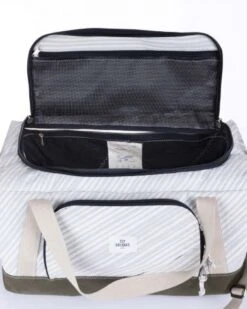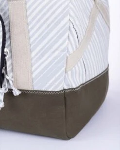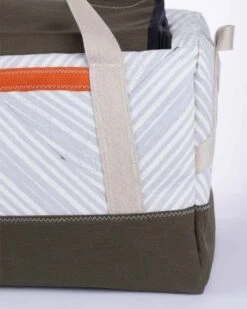 Meet the Féroé—a travel bag that combines style, sustainability, and serious functionality. Crafted from 100% recycled sailcloth, it’s ultra-spacious, offering plenty of room for your clothing and gear. The khaki green acrylic fabric base adds a durable touch, while its flexible duffel-style design makes packing and unpacking effortless.