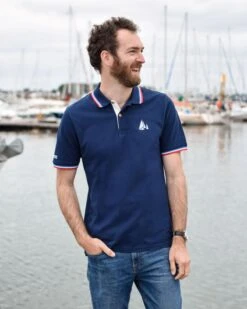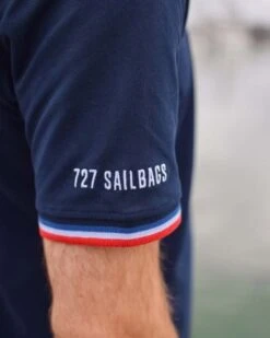 Short sleeve polo shirt, made from 100% cotton and recycled sail details.