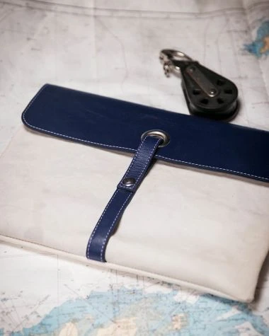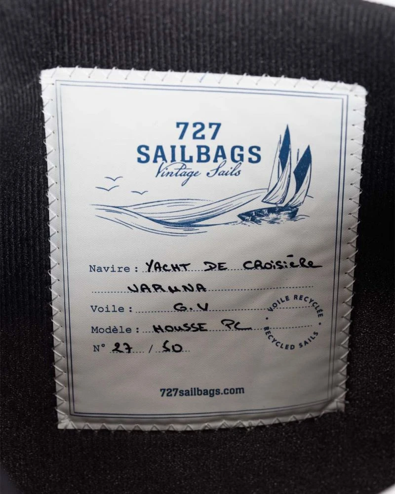 We have recycled the dacron genoa (headsail) of Sumurun, a 28 meter ketch designed in 1914 by William Fife. Made from the headsail of this prestigious classic yacht, this series is limited and each piece is numbered.