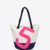 The Sandy handbag is made from 100% recycled sails. with natural linen and leather number. The bag has a zip fastener. A certificate of origin has been sewn inside and tells the story behind the sails.