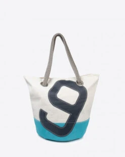 Made from 100% recycled sail, the Sandy handbag from SummerTime collection oozes authenticity and will seduce you with its perfect cut and high-quality confection. It is made of a turquoise fabric base, white recycled sailcloth and a large “9”, sewn with our iconic zigzag stitch.