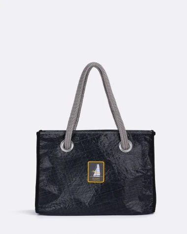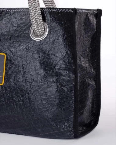 Made from 100% recycled black 3DI sail, the Seaside tote bag is a structured and spacious bag made for following you everywhere: from the beach to the city, and at work.