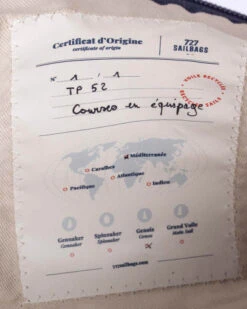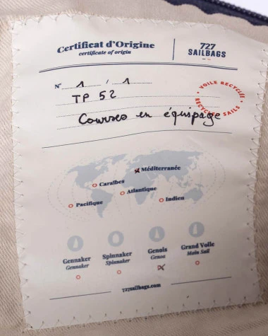 Inside, a certificate of origin attests to the recycled sail’s provenance, adding a unique touch to this eco-friendly product.