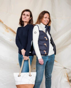 - Upcycled : inserts of recycled sails on the shoulders and collar and filling in fibers from recycled plastic bottles.
