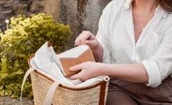 Made of recycled boat sail, this unique women’s wallet is sublimated by its dacron inserts, its leather base, its mustard interior and its gold finish metal zip.